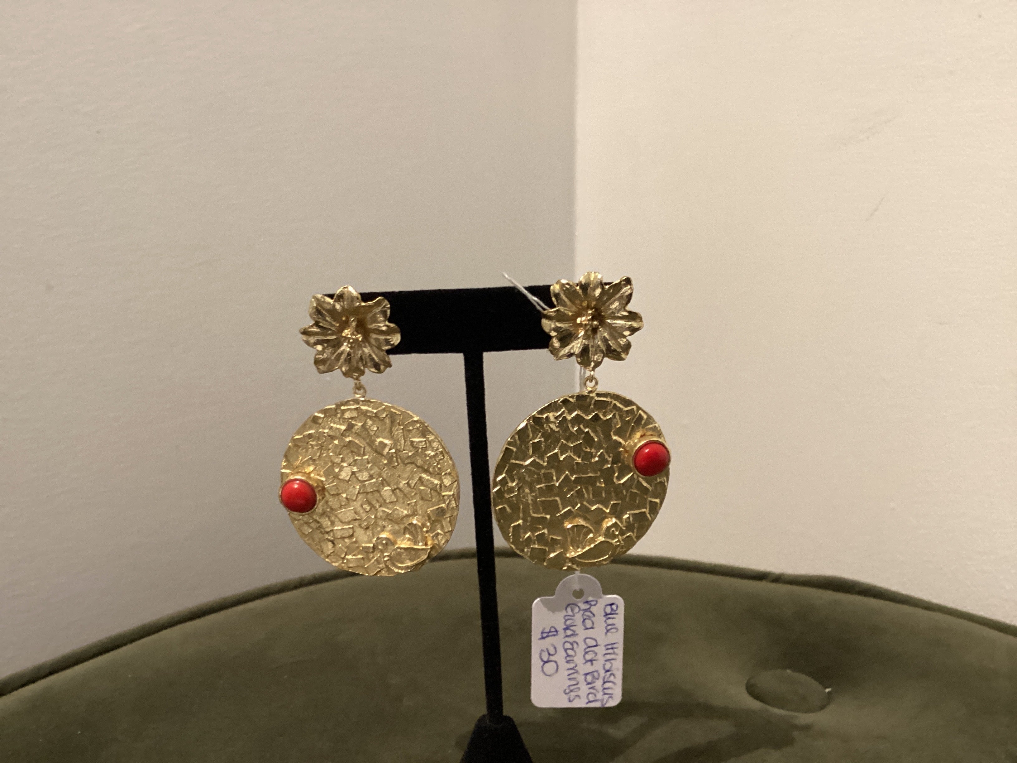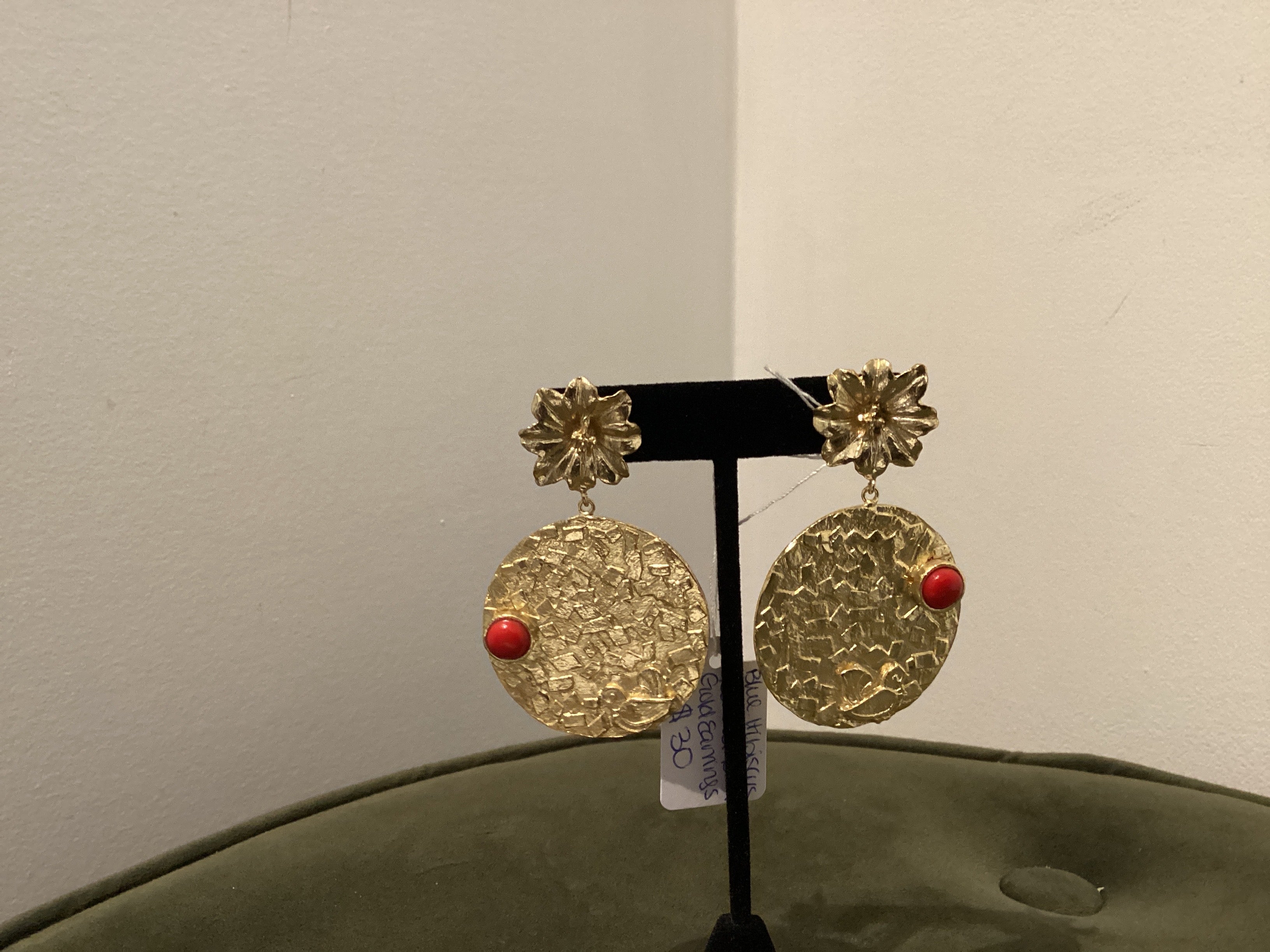 Red Dot Gold Earrings