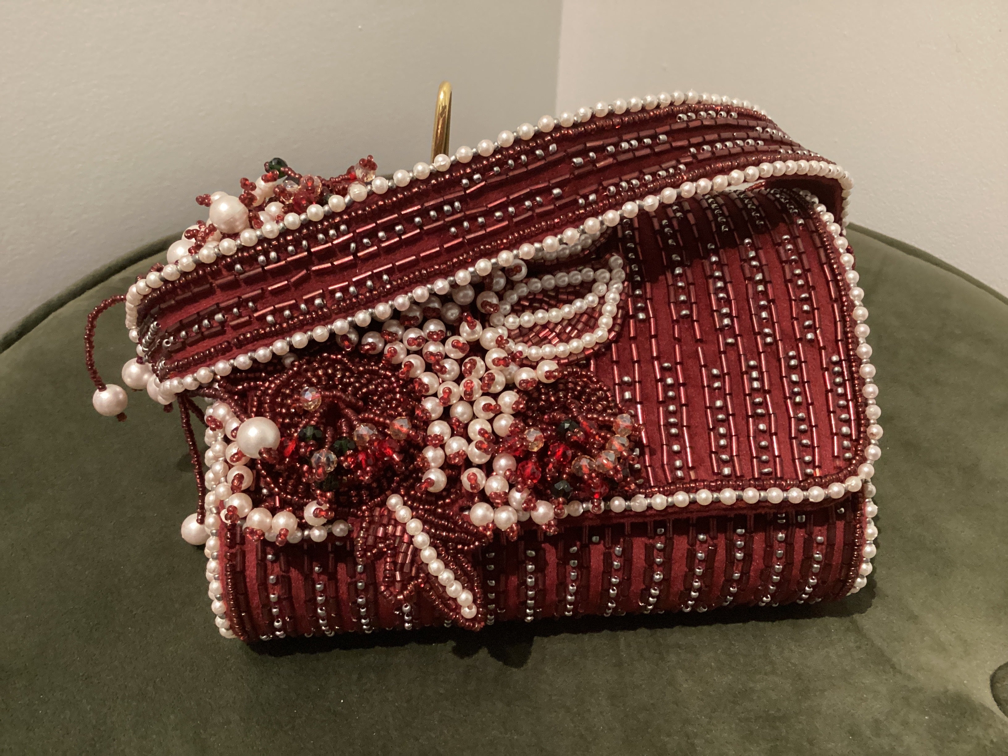 Maroon & White Beaded Bag