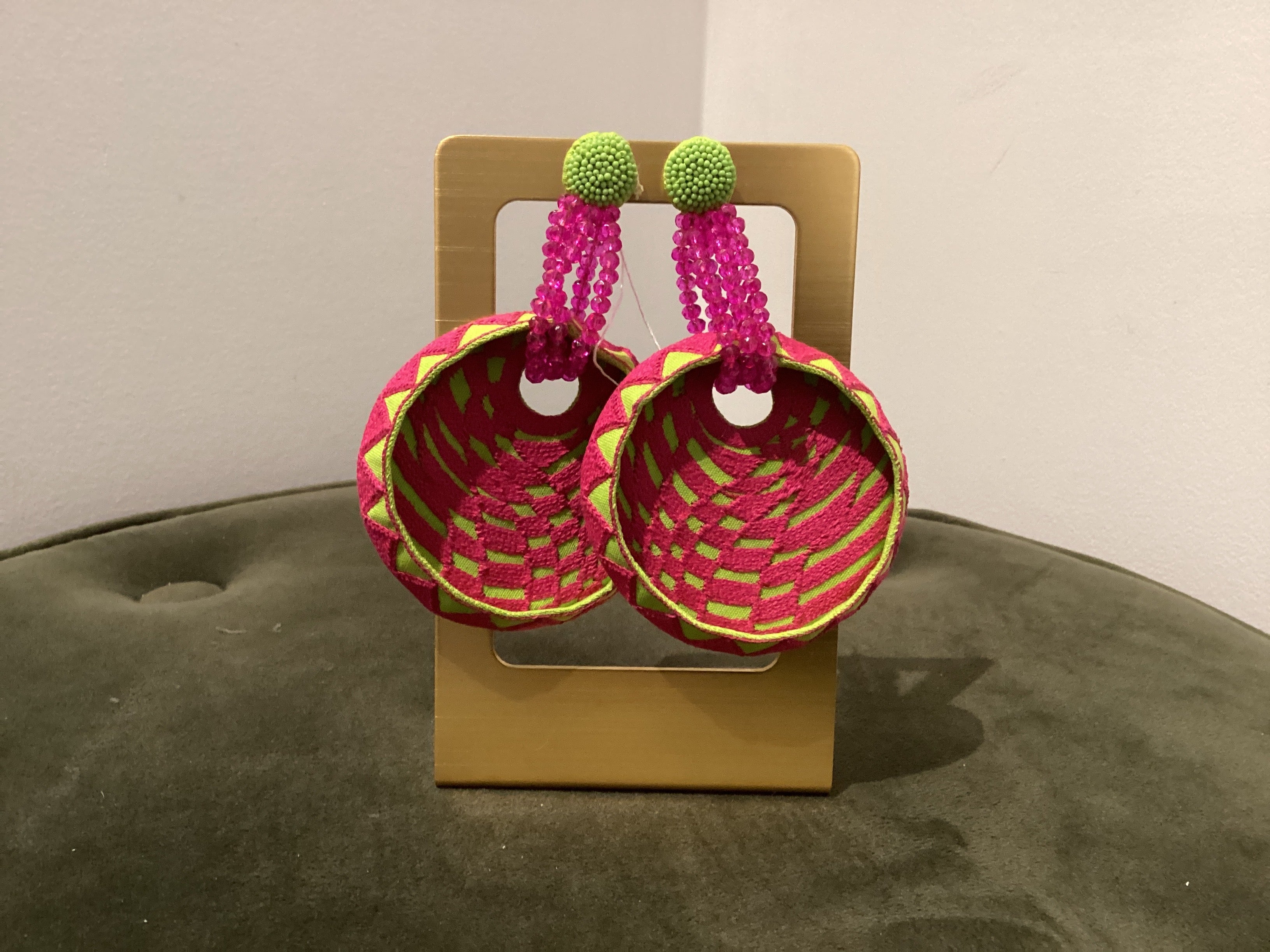 Pink & Green Basket Earrings
